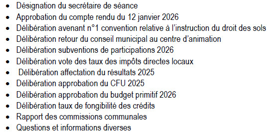 Le prochain conseil municipal aura lieu le lundi 9 mars à 19h30 à la mairie.